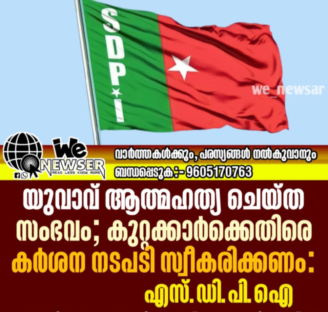 യുവാവ് ആത്മഹത്യ ചെയ്ത സംഭവം; കുറ്റക്കാർക്കെതിരെ കർശന നടപടി സ്വീകരിക്കണം: എസ്.ഡി.പി.ഐ.