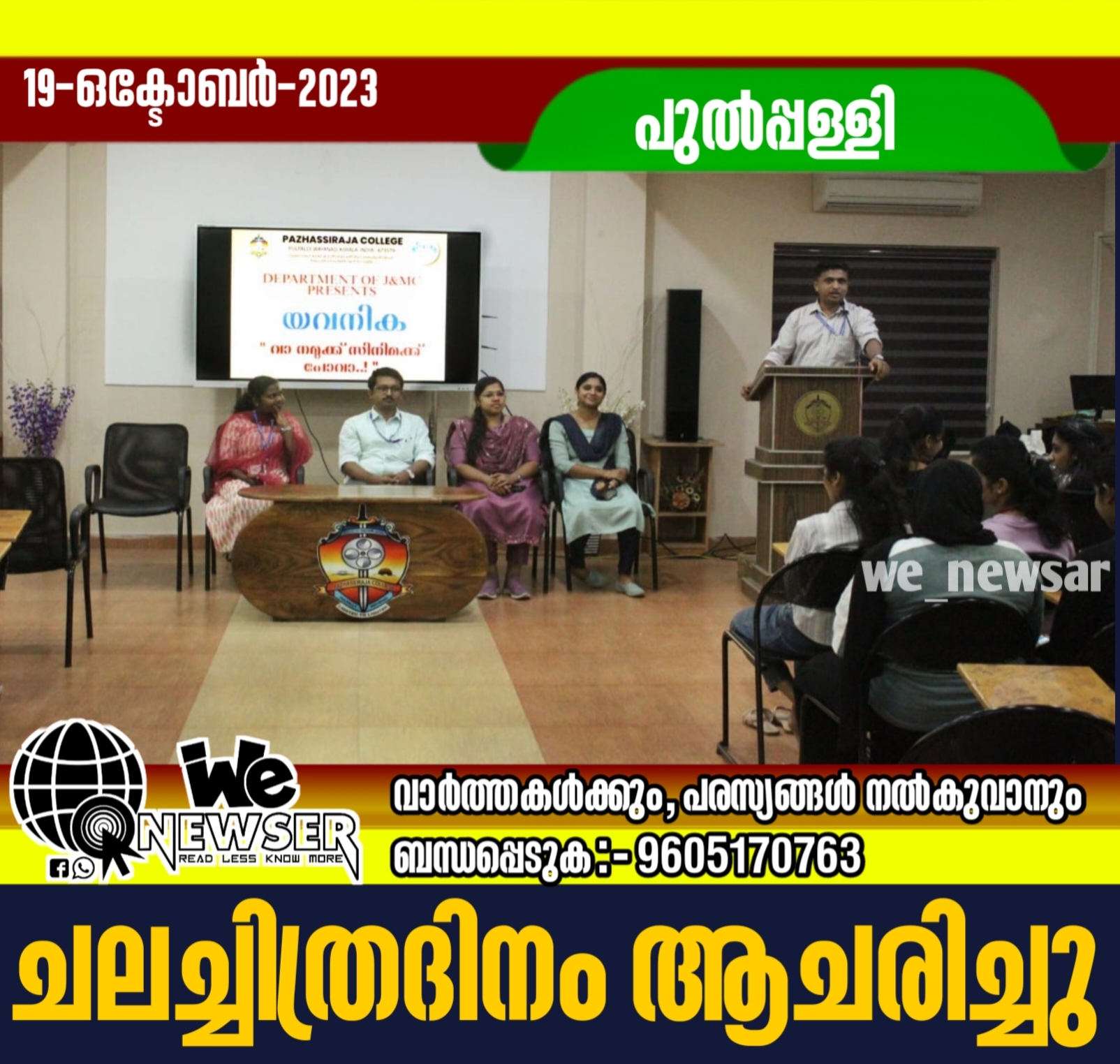 പുൽപ്പള്ളി : ദേശീയ ചലച്ചിത്ര ദിനത്തോടനുബന്ധിച്ച് പുൽപ്പള്ളി പഴശ്ശിരാജ കോളേജിൽ സിനിമ പ്രദർശനവും മറ്റു മത്സര പരിപാടികൾ നടത്തുകയും, ജേർണലിസം വിദ്യാർത്ഥികൾ നിർമ്മിച്ച ഹ്രസ്വചിത്രം പ്രദർശിപ്പിക്കുകയും ചെയ്തു.