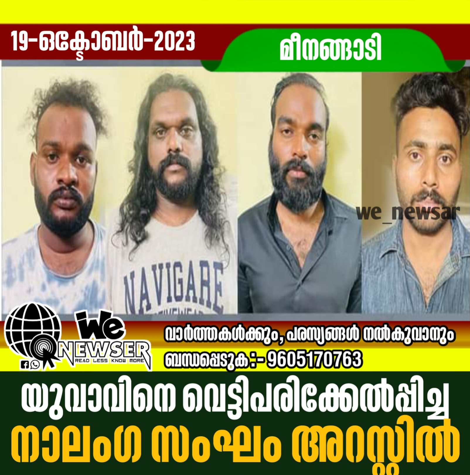 മീനങ്ങാടി: കരണിയിൽ യുവാവിനെ വെട്ടി പരിക്കേൽപ്പിച്ച് കടന്നു കളഞ്ഞ നാലംഗ അക്രമി സംഘത്തെ എറണാകുളത്ത് വെച്ച് മീനങ്ങാടി പോലീസ് സാഹസികമായി പിടികൂടി. എറണാകുളം നോർത്ത് പറവൂർ സ്വദേശികളായ മന്നം കോക്കർണി പറമ്പിൽ ശരത് (34), മാഞ്ഞാലി കണ്ടാരത്ത് അഹമ്മദ് മസൂദ് (27), മന്നം കോക്കർണി പറമ്പിൽ കെ.എ. അഷ്ബിൻ (26), കമ്പളക്കാട് കല്ലപറമ്പിൽ കെ.എം. ഫഹദ് (28) എന്നിവരെയാണ് ജില്ലാ പോലീസ് മേധാവിയുടെ നിർദ്ദേശപ്രകാരം ബത്തേരി ഡിവൈ.എസ്.പി. കെ.കെ. അബ്ദുൾ ഷെരീഫിന്റെ നേതൃത്വത്തിലുള്ള പ്രത്യേക അന്വേഷ സംഘം പിടികൂടിയത്. സംഘത്തിൽ നിന്നും മാരകായുധങ്ങളും പിടിച്ചെടുത്തിട്ടുണ്ട്. ഇവർ നിരവധി കേസുകളിൽ പ്രതികളാണ്.