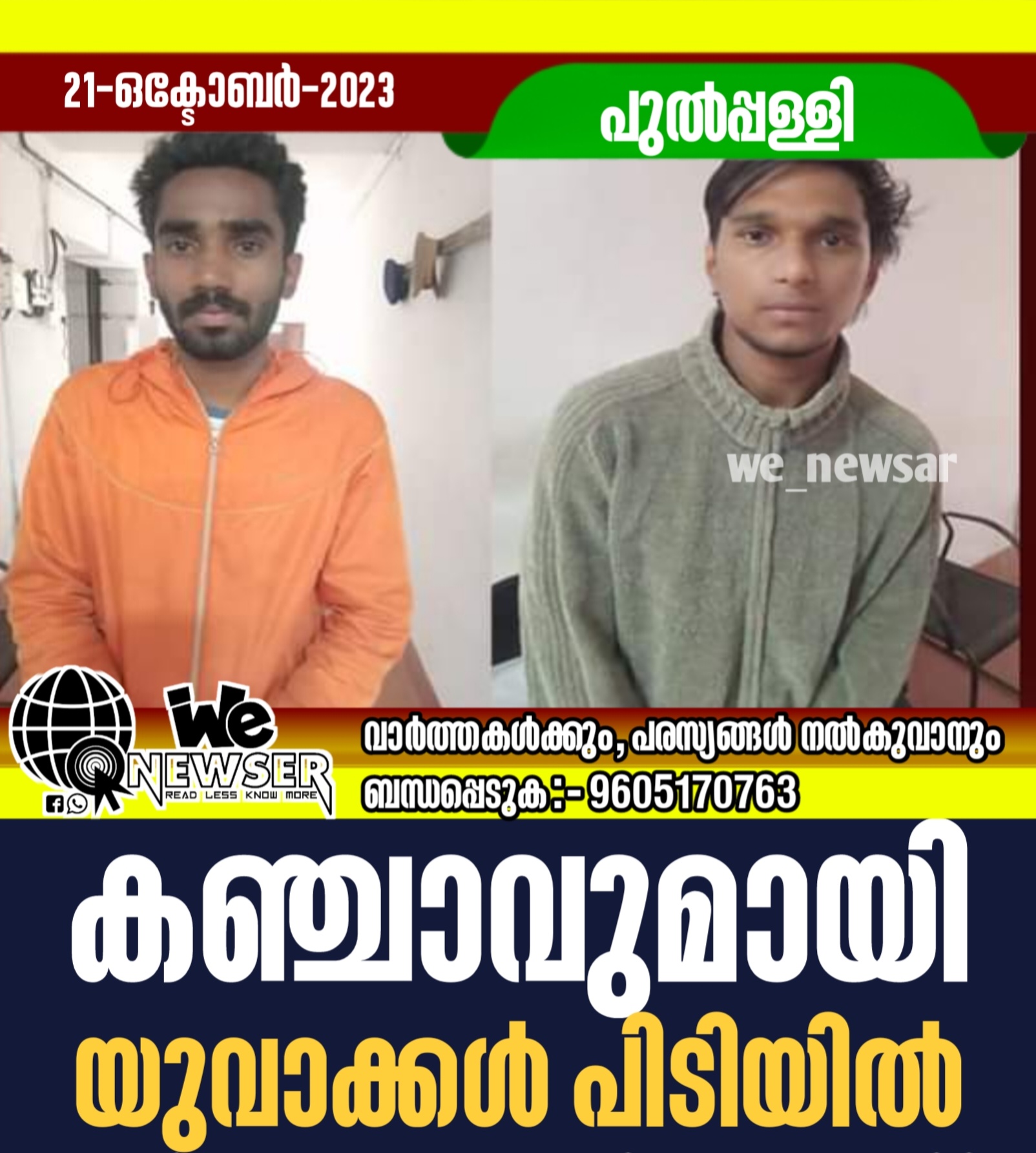 പുൽപള്ളി : 236 ഗ്രാം കഞ്ചാവുമായി മോട്ടോർ സൈക്കിളിൽ യാത്ര ചെയ്യുകയായിരുന്ന മേപ്പാടി സ്വദേശികളായ പൂത്തക്കൊല്ലി പാടിയിലെ ശിവപ്രസാദ് (22) മുക്കിൽ പീടിക കാലടിയിൽ വീട്ടിൽ മുഹമ്മദ് അസ്ലം (20) എന്നിവരെയാണ് പെരിക്കല്ലൂർക്കടവ് മരക്കടവ് റോഡിൽ വച്ച് പുൽപള്ളി പോലീസ് പിടികൂടിയത്. ഇവർ സഞ്ചരിച്ചിരുന്ന KL57 H 3979 നമ്പർ മോട്ടോർ സൈക്കിളും ബന്തവസ്സിലെടുത്തു. ഇരുവർക്കെതിരെയും എൻ ഡി പി എസ് ആക്ട് പ്രകാരം കേസെടുത്തു. പുൽപള്ളി പോലീസ് സ്റ്റേഷൻ സബ് ഇൻസ്പെക്ടർ പി ജി സാജൻ, എ എസ് ഐ ഫിലിപ്പ്, സിവിൽ പോലീസ് ഓഫീസർമാരായ അസീസ്, അയ്യപ്പൻ എന്നിവരാണ് പോലീസ് സംഘത്തിലുണ്ടായിരുന്നത്.