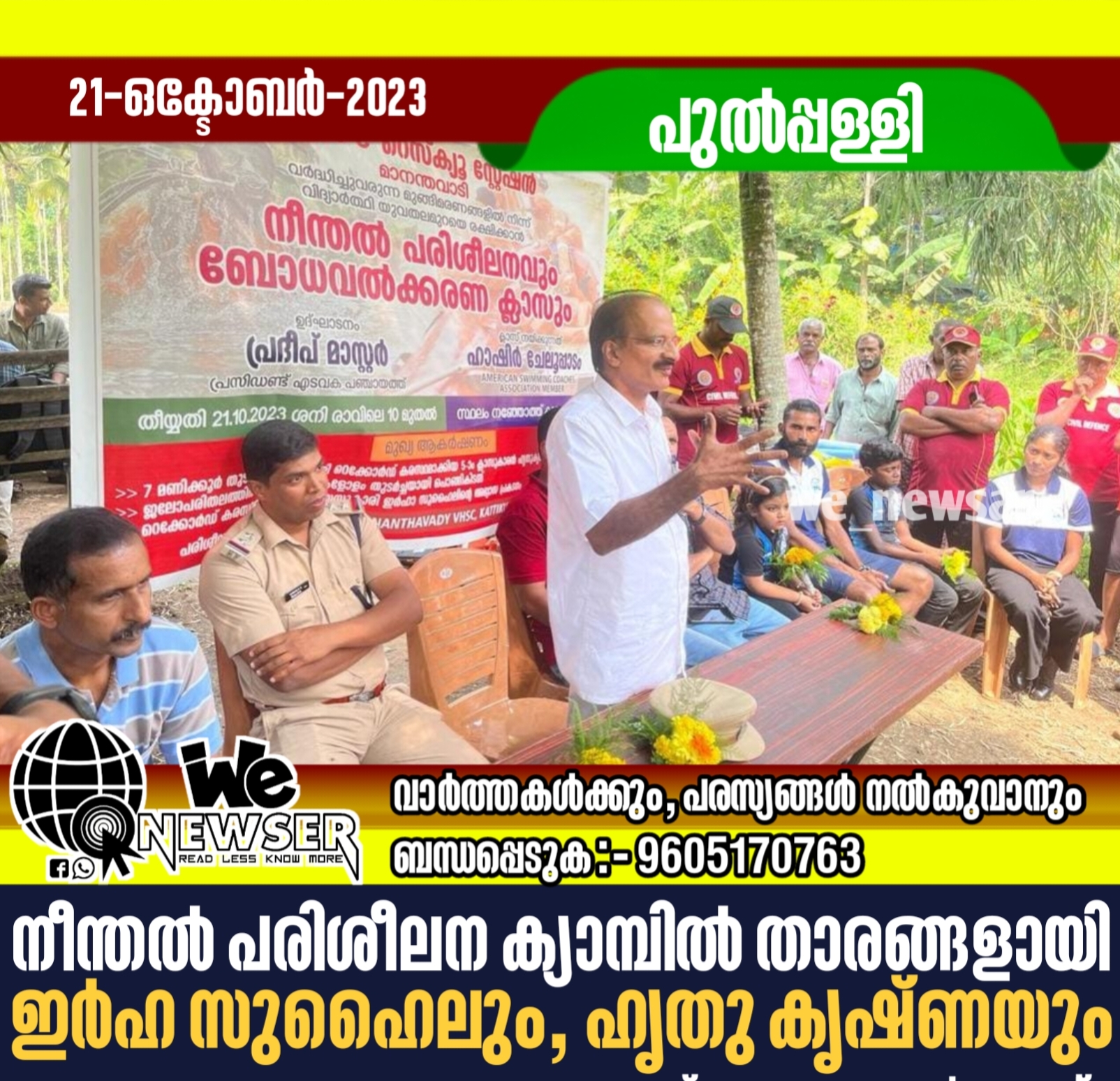 നീന്തൽ പരിശീലന ക്യാമ്പിൽ താരങ്ങളായി ഇർഹ സുഹൈലും, ഹൃതു കൃഷ്ണയും.