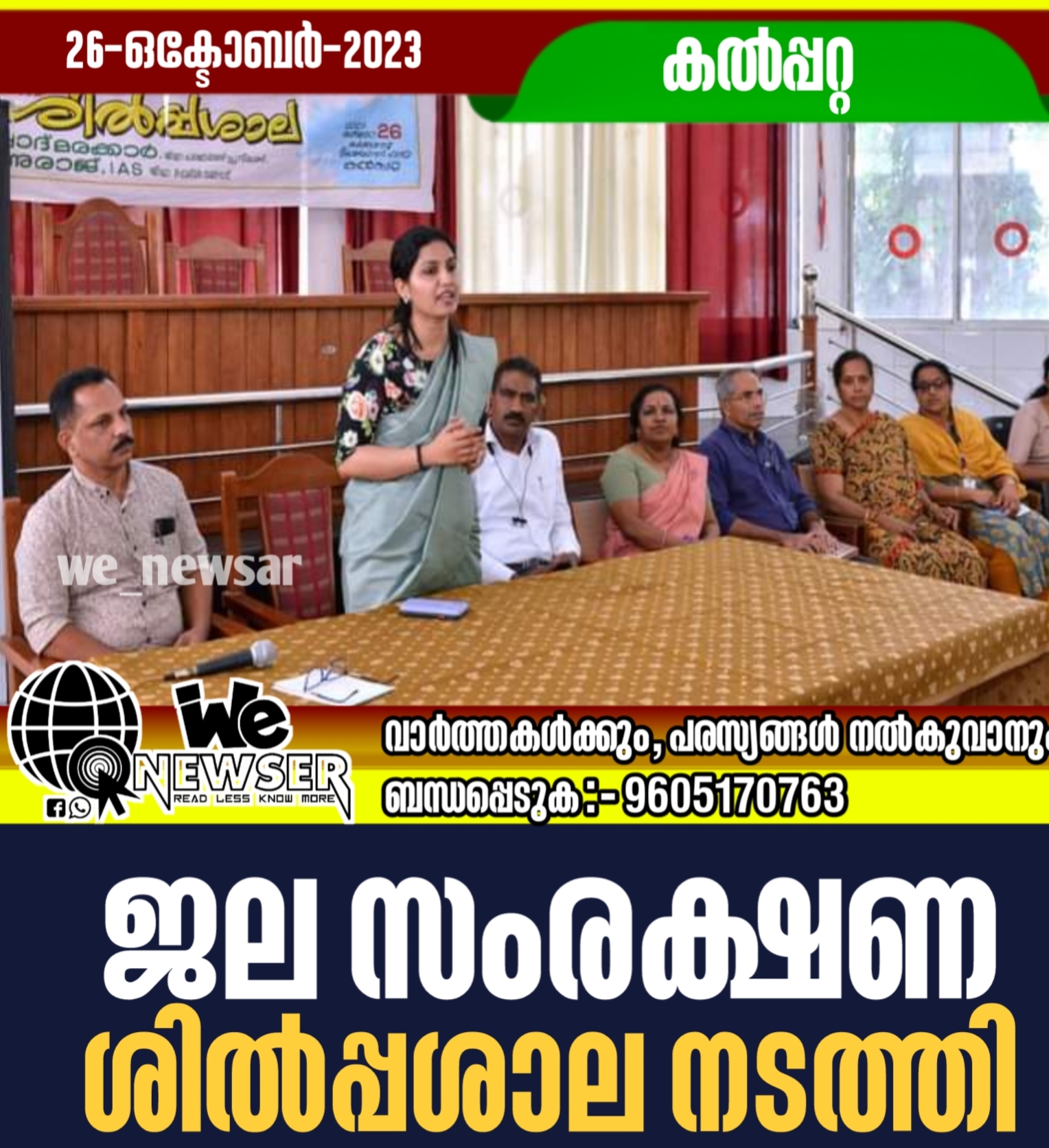 കൽപ്പറ്റ : നവകേരളം കര്മ്മ പദ്ധതിയില് ഹരിത കേരളം മിഷന്റെയും മഹാത്മ ഗാന്ധി ദേശീയ തൊഴിലുറപ്പ് പദ്ധതിയുടെയും നേതൃത്വത്തില് ജില്ലാ ബ്ലോക്ക് തല സാങ്കേതിക സമിതി അംഗങ്ങള്ക്കും ഉദ്യോഗസ്ഥര്ക്കുമായി ജല സംരക്ഷണ ജില്ലാതല ശില്പ്പശാല നടത്തി. ജില്ലാ കലക്ടര് ഡോ.രേണു രാജ് ഉദ്ഘാടനം ചെയ്തു. മഹാത്മ ഗാന്ധി ദേശീയ തൊഴിലുറപ്പ് പദ്ധതി ജോയിന്റ് പ്രോഗ്രാം കോര്ഡിനേറ്റര് പി.സി. മജീദ് അധ്യക്ഷത വഹിച്ചു. ജലസംരക്ഷണ പ്രവര്ത്തനങ്ങള് ഉള്പ്പെടെ വരള്ച്ചയെ നേരിടാന് സമഗ്രവും ശാസ്ത്രീയവുമായ മുന്നൊരുക്കങ്ങള് ചര്ച്ച ചെയ്യുക എന്നതാണ് ശില്പ്പശാലയുടെ ലക്ഷ്യം. ഒരു പ്രദേശത്ത് ലഭിക്കുന്ന ജലം പാഴാക്കാതെ പൂര്ണമായും പ്രയോജനപ്പെടുത്താനുള്ള ക്യാമ്പെയിന് പ്രവര്ത്തനങ്ങളും ശില്പശാലയുടെ ഭാഗമായി നടന്നു. ഹരിതകേരളം മിഷന്റെയും ദേശീയ ഗ്രാമീണ തൊഴിലുറപ്പ് പദ്ധതിയുടെയും നേതൃത്വത്തില് ജില്ലയില് നടന്നു വരുന്ന നീരുറവ്, കബനിക്കായ് വയനാട് എന്നീ ക്യാമ്പെയിനുകളുടെ അവതരണവും നടന്നു. ജില്ലാ മണ്ണ് സംരക്ഷണ ഓഫീസര് ബിന്ദു മേനോന്, സോയില് സര്വ്വേ അസി.ഡയറക്ടര് ബി.സി ദീപ, ചെറുകിട ജലസേചന വിഭാഗം എക്സിക്യൂട്ടീവ് എഞ്ചിനീയര് പി.ഡി. അനിത, കൃഷി ഡെപ്യൂട്ടി ഡയറക്ടര് എച്ച്. ഷബീന, ഭൂജല വകുപ്പ് ജില്ലാ ഓഫീസര് ഉദയകുമാര്, എല്.എസ്.ജി.ഡി എക്സിക്യൂട്ടീവ് എഞ്ചിനീയര് ശ്രീനിവാസന്, നവകേരളം ജില്ലാ കോര്ഡിനേറ്റര് ഇ.സുരേഷ് ബാബു തുടങ്ങിയവര് വിഷയാവതരണം നടത്തി.