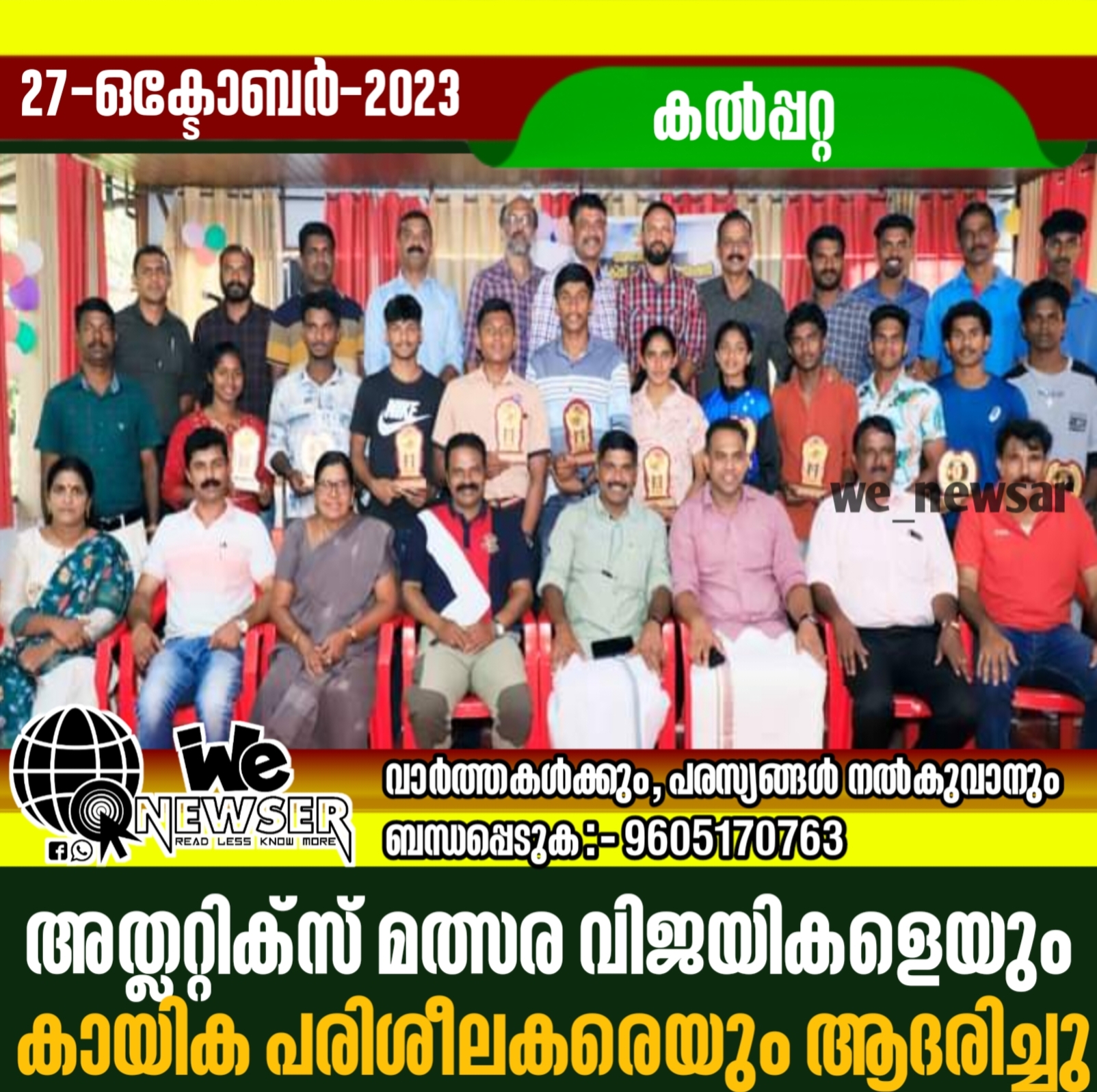 അത്ലറ്റിക്സ് മത്സര വിജയികളെയും കായിക പരിശീലകരെയും ആദരിച്ചു