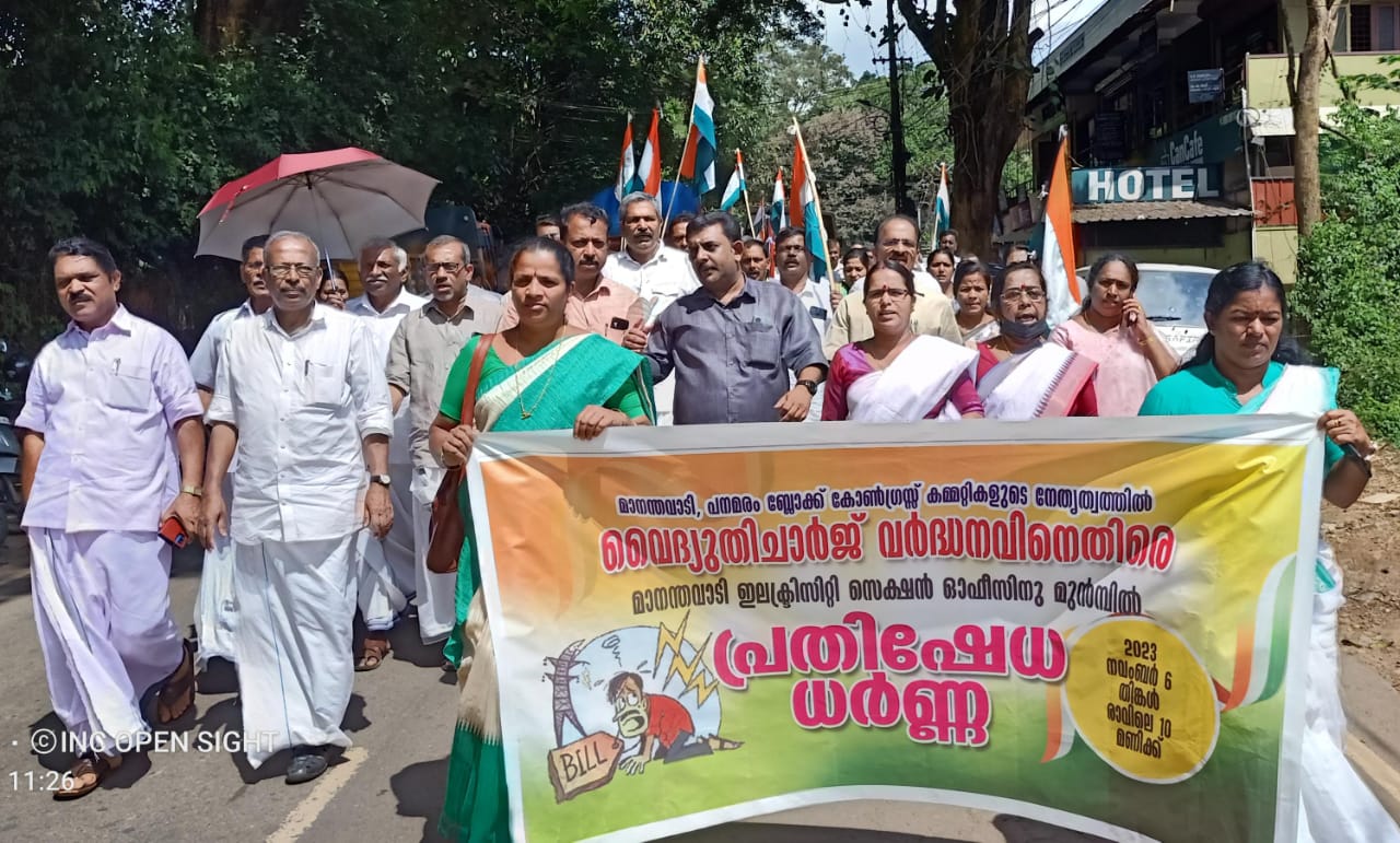 മാനന്തവാടി: കെ.എസ്.ഇ.ബി വൈദ്യുത ചാർജ് വർദ്ധിപ്പിച്ച് ജനങ്ങളുടെ മേൽ ഇരുട്ടടി സൃഷ്ടിച്ചതിനെതിരെ കെ.പി.സി.സി.സി യുടെ ആഹ്വാന പ്രകാരം സംസ്ഥാനത്ത് ഉടനീളം പ്രതിഷേധം നടക്കുന്നതിൻ്റെ ഭാഗമായി മാനന്തവാടി, പനമരം ബ്ലോക്ക് കോൺഗ്രസ് കമ്മിറ്റികളുടെ ആഭിമുഖ്യത്തിൽ മാനന്തവാടി സെക്ഷൻ ഓഫീസിലേക്ക് പ്രതിഷേധ മാർച്ചും,ധർണ്ണയും നടത്തി. കേരളത്തിലെ ജനങ്ങളെ മുഴുവൻ കൊള്ളയടിക്കുകയും, ക്ഷേമ പെൻഷനുകൾ വിതരണം ചെയ്യാതെയും, വെള്ളക്കരം വർദ്ധിപ്പിച്ച് ജനങ്ങളുടെ ജീവിതം ദു:സഹമാക്കുന്ന ഇടത് സർക്കാരിനെതിരെ നടന്ന കെ.എസ്.ഇ.ബി.ഓഫീസിലേക്കുള്ള സമരത്തിൽ സമരക്കാരുടെ പ്രതിഷേധം ഇരമ്പി.