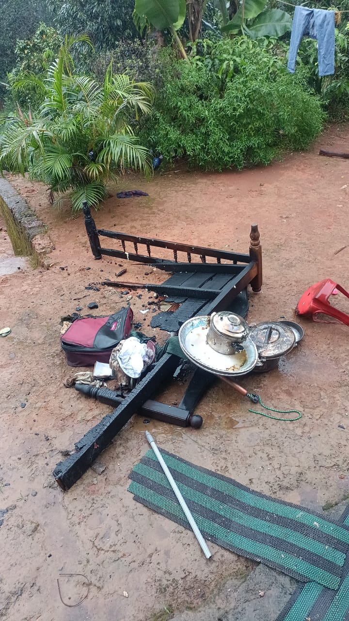 എടവക:ഇടിമിന്നലിൽ വീട് ഭാഗികമായി കത്തിനശിച്ചു.ഇന്നലെ രാത്രി പത്തരയോടെയുണ്ടായ ഇടിമിന്നലിൽഎടവക പഞ്ചായത്തിലെ കമ്മോത്ത് ബീരാളി ഇബ്രാഹിമിൻ്റെ വീട്ടിലെ ഒരു മുറിയാണ് പൂർണ്ണമായും കത്തിനശിച്ചത്. പാസ്പോർട്ട്, ആധാരം തുടങ്ങിയപ്രധാന രേഖകൾ തീപിടുത്തത്തിൽ കത്തിനശിച്ചു. ഇടിമിന്നലേറ്റഈ മുറിയിൽ കഴിഞ്ഞിരുന്ന ഇബ്രാഹിം അസുഖബാധിതനായിആശുപത്രി യിൽചികിത്സയിലായിരുന്നതിനാൽ വൻ അപകടം ഒഴിവായി. വീട്ടിലുണ്ടായിരുന്ന മറ്റു കുടുംബാംഗങ്ങൾ മറ്റ് മുറികളിലായിരുന്നു ഉണ്ടായിരുന്നത്. പുലർച്ചെ നാല് മണിയോടെ വീട്ടിനുള്ളിൽ നിന്നും പുക ഉയരുന്നത് കണ്ട് നോക്കിയപ്പോഴാണ് വീട്ടുകാർ സംഭവം അറിയുന്നത്. അപ്പോഴേക്കും മുറിയിൽ സൂക്ഷിച്ചിരുന്ന പാസ്പോർട്ടും ആധാരവുമടങ്ങുന്ന സുപ്രധാന രേഖകൾ കത്തി നശിച്ചിരുന്നു. കട്ടിലും, കിടക്കയും വസ്ത്രങ്ങളും പൂർണമായും കത്തിനശിച്ചതായി വീട്ടിലുണ്ടായിരുന്ന മകൾ സഫിയ പറഞ്ഞു. ഇടിമിന്നലിൽ തീപിടിച്ചതോ, മിന്നലിനെ തുടർന്ന് ഉണ്ടായ ഷോർട്ട് സർക്യൂട്ടോ ആകാം തീപിടുത്തത്തിന് കാരണമെന്നാണ് വീട്ടുകാർ സംശയിക്കുന്നത്.