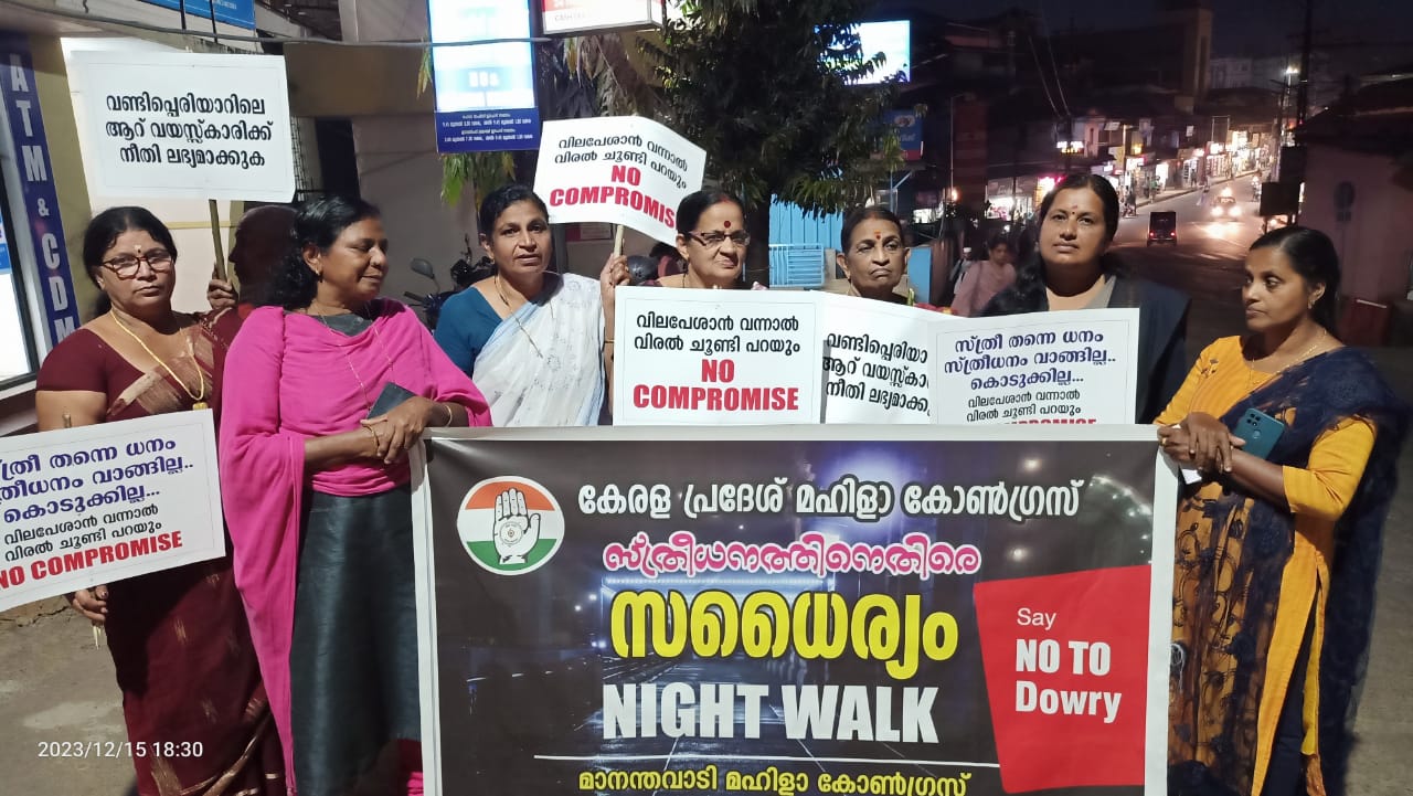 ”വില പേശാൻ വന്നാൽ വിരൽ ചുണ്ടി പറയും ” നോ കൊമ്പർമെൻസ് മഹിളാ കോൺഗ്രസ് നൈറ്റ് വാക്ക് സംഘടിപ്പിച്ചു
