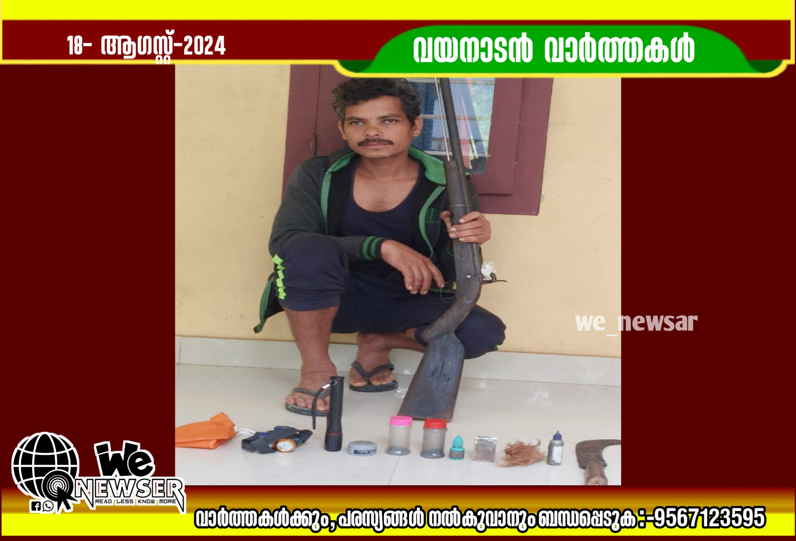 വനത്തിൽ വെടി ശബ്ദം കേട്ട് നടത്തിയ തിരിച്ചിനിടയിലാണ് വനത്തിനുള്ളിൽ നിന്നും നാടൻ നിറത്തോക്കും വെടിമരുന്നും ആയുധങ്ങൾ സഹിതം പ്രതിയെ പിടികൂടിയത്. വരയാൽ ഫോറസ്റ്റ് സ്റ്റേഷൻ ബീറ്റ് ഫോറസ്റ്റ് ഓഫീസർമാരായ സിറിൽ സെബാസ്റ്റ്യൻ, ഉമേഷ് , അരുൺ സി, അരുൺ ചന്ദ്രൻ എന്നിവർ പ്രതിയെ പിടികൂടിയ സംഘത്തിൽ ഉൾപ്പെട്ടിരുന്നു. പ്രതിക്കെതിരെ വന നിയമവും വന്യജീവി സംരക്ഷണ നിയമം കൂടാതെ ആംസ് ആക്ട് പ്രകാരമുള്ള കേസ് രജിസ്റ്റർ ചെയ്യുമെന്ന് പേര്യ റെയിഞ്ച് ഫോറസ്റ്റ് ഓഫീസർ സനൂപ് കൃഷ്ണൻ പറഞ്ഞു.