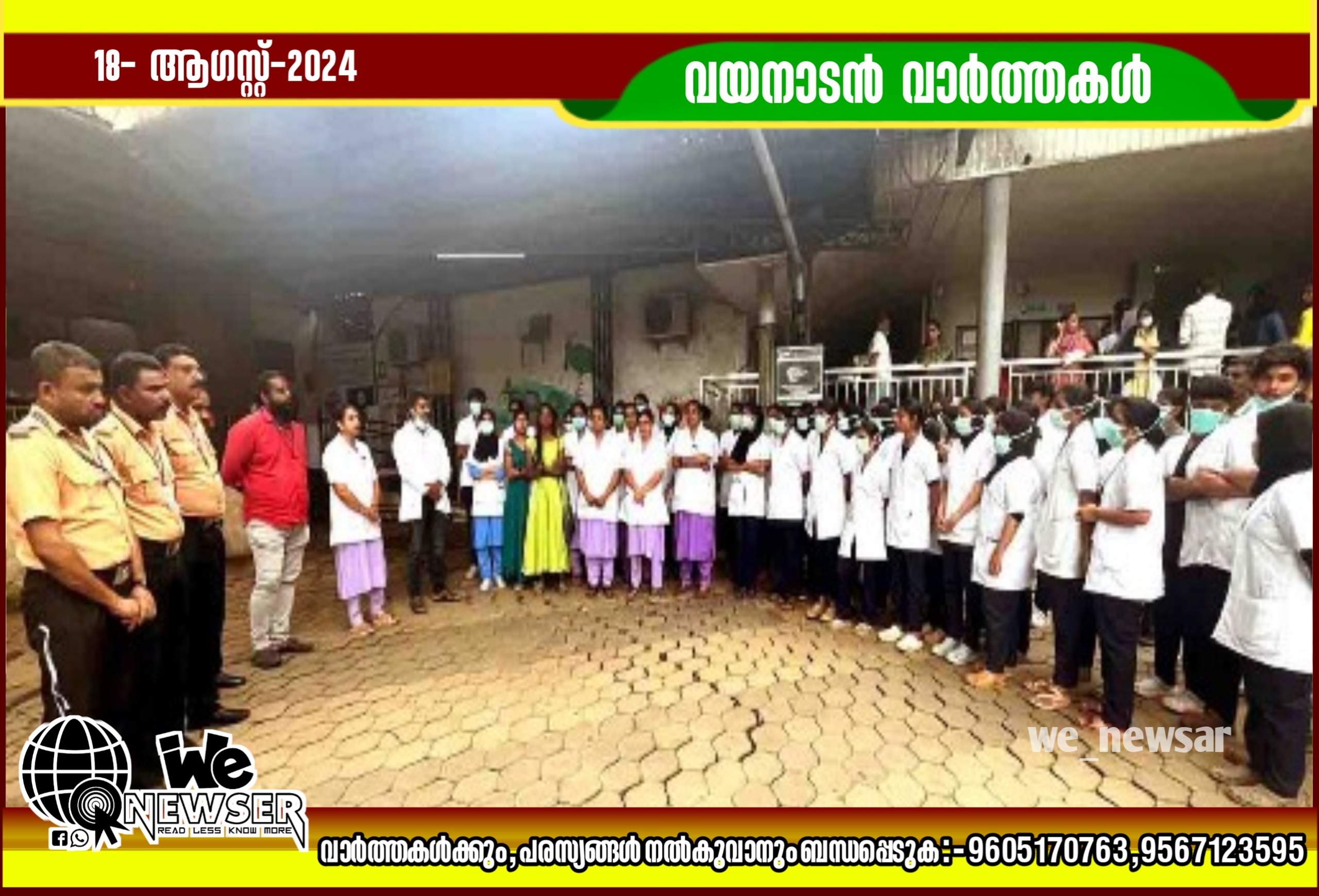 മാനന്തവാടി: കൊല്‍ക്കത്തയിലെ യുവ ഡോക്ടറുടേയും, ഉത്തരാഖണ്ഡിലെ നഴ്‌സിംഗ് ഓഫീസറുടെയും ക്രൂരമായ കൊലപാതകത്തില്‍ കെ.ജി.എന്‍.എ യുടെ നേതൃത്വത്തില്‍ വയനാട് മെഡിക്കല്‍ കോളേജ് സ്റ്റാഫ് കൗണ്‍സില്‍ ശക്തമായ പ്രതിഷേധം രേഖപ്പെടുത്തി. ആര്‍എംഒ ഡോ.അര്‍ജുന്‍ ജോസ്, സീനിയര്‍ നഴ്‌സിംഗ് ഓഫീര്‍മാരായ എയ്ഞ്ചല്‍, ബോബി, സെക്യൂരിറ്റി ചീഫ് ഷിബു പി.വി, നഴ്‌സിംഗ് ഓഫീസര്‍മാരായ രഞ്ജിത്ത്,സുവര്‍ണ്ണ തുടങ്ങിയവര്‍ സംസാരിച്ചു.
