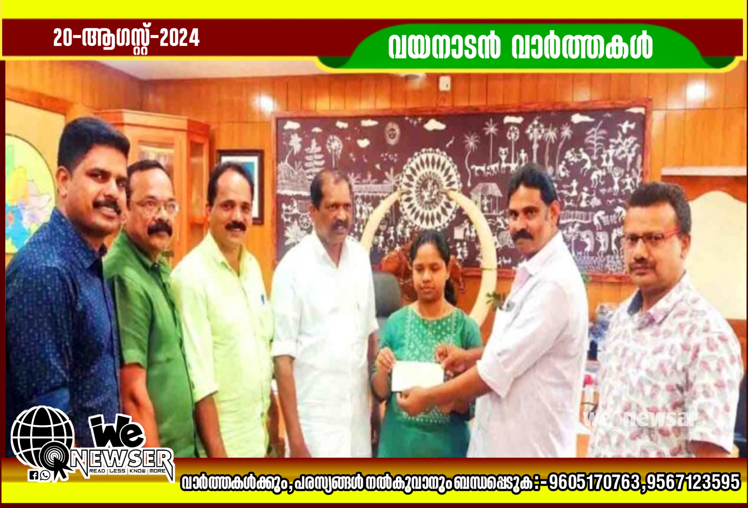 കൽപ്പറ്റ: ‘കൈകോർക്കാം വയനാടിനായി’ മുണ്ടക്കൈ, ചൂരൽമല പുഞ്ചിരി വട്ടം, ദുരന്തത്തിനിരയായ വരെ സഹായിക്കുക എന്ന ലക്ഷ്യത്തോടുകൂടി നല്ലൂർനാട് സർവീസ് സഹകരണ ബാങ്ക് ഒരു ലക്ഷം രൂപ മുഖ്യമന്ത്രിയുടെ ദുരിതാശ്വാസനിധിയിലേക്ക് നൽകി.പട്ടികജാതി, പട്ടികവർഗ്ഗ, പിന്നോക്ക ക്ഷേമ വികസന വകുപ്പ് മന്ത്രി ഒ.ആർ. കേളുവിന്റെ സാന്നിധ്യത്തിൽ ജില്ലാ കലക്ടർ ഡി.ആർ.മേഘശ്രീക്ക് ബാങ്ക് പ്രസിഡണ്ട് പി. സന്തോഷ് ചെക്ക് കൈമാറി. വൈസ് പ്രസിഡണ്ട് യു.വി ബിജു, സെക്രട്ടറി രാജു മാത്യു, ബോർഡ് മെമ്പർ ജെയിംസ് ഐപ്പ്, ജീവനക്കാരനായ സി. എം. സന്തോഷ് എന്നിവർ സന്നിഹിതരായിരുന്നു.