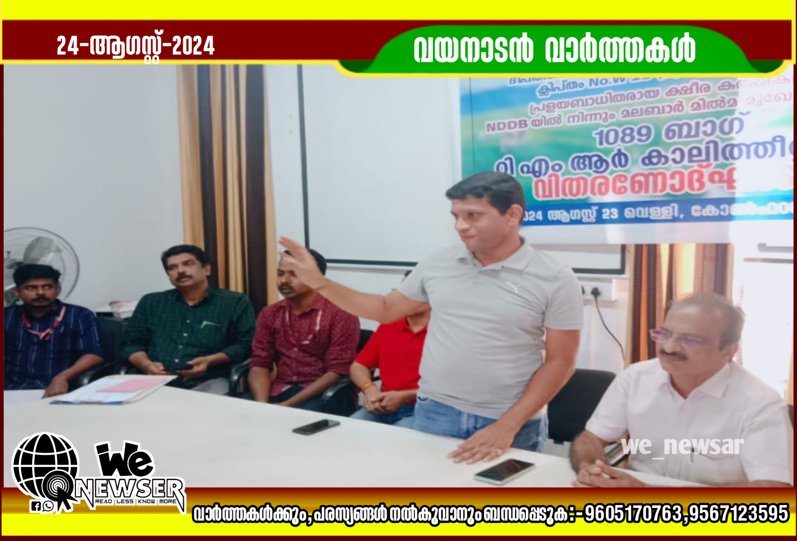 എടവക : പ്രളയ ബാധിതരായ ക്ഷീര കർഷകർക്ക് ദേശീയ ക്ഷീരവികസന ബോർഡ് മലബാർ മിൽമ മുഖേന സൗജന്യമായി അനുവദിച്ച ടോട്ടൽ മിക്സ്ഡ് റേഷൻ ( ടി. എം. ആർ) കാലിത്തീറ്റ വിതരണം ചെയ്യുന്നതുമായി ബന്ധപ്പെട്ട് എൻ.ഡി.ഡി.ബി സീനിയർ മാനേജർമാരായ തുംഗയ്യ സാലിയാൻ, ഹാലാ നായിക് എന്നിവർ ദീപ്തിഗിരി ക്ഷീര സംഘം സന്ദർശിച്ച് കർഷകരുമായി സംവദിച്ചു. പ്രസിഡണ്ട് എച്ച്. ബി പ്രദീപ് മാസ്റ്റർ അദ്ധ്യക്ഷത വഹിച്ചു.