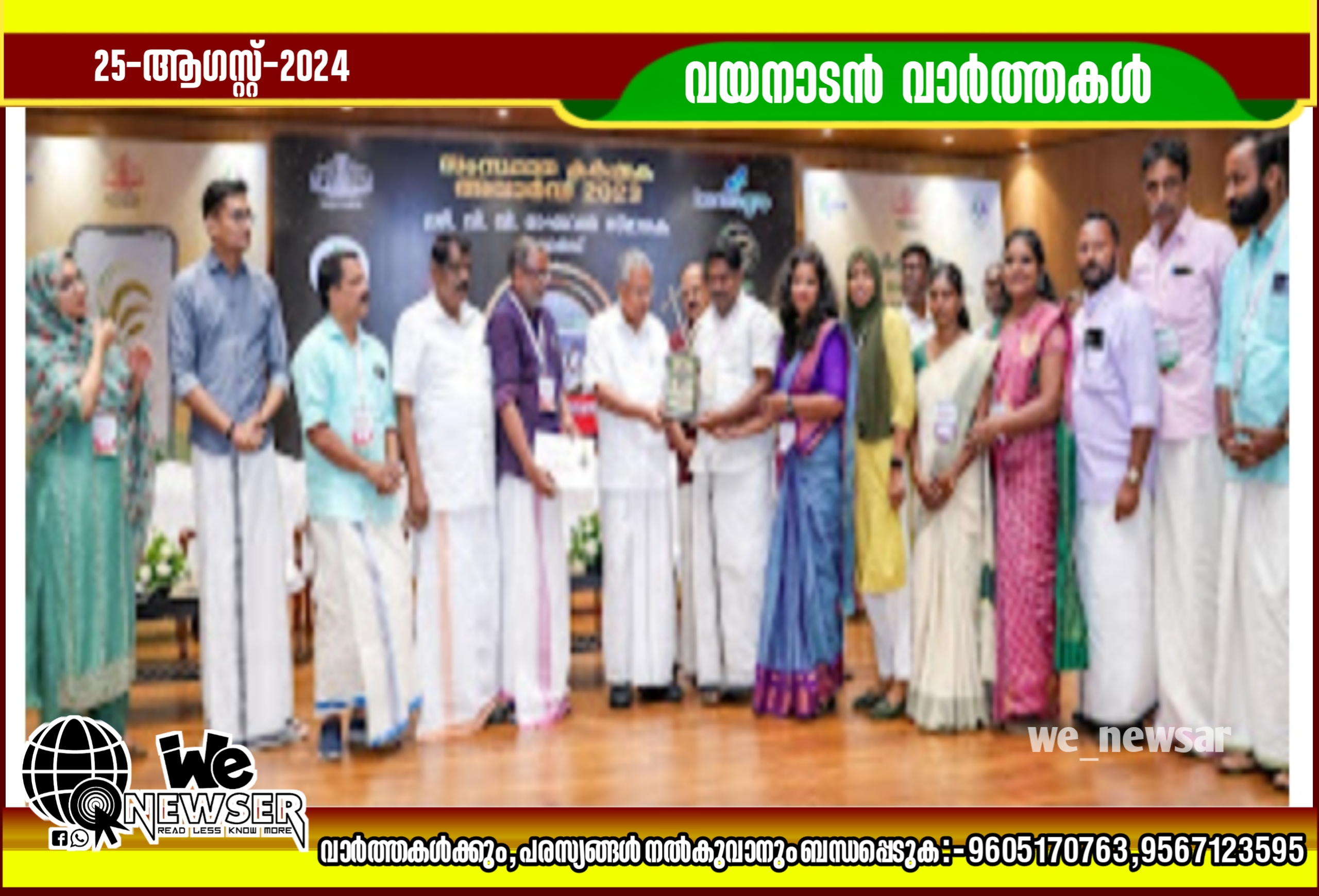 സംസ്ഥാനത്തെ മികച്ച കൃഷിഭവനായി തെരഞ്ഞെടുത്ത മീനങ്ങാടി ഗ്രാമപഞ്ചായത്ത് പുരസ്കാരം ഏറ്റുവാങ്ങി