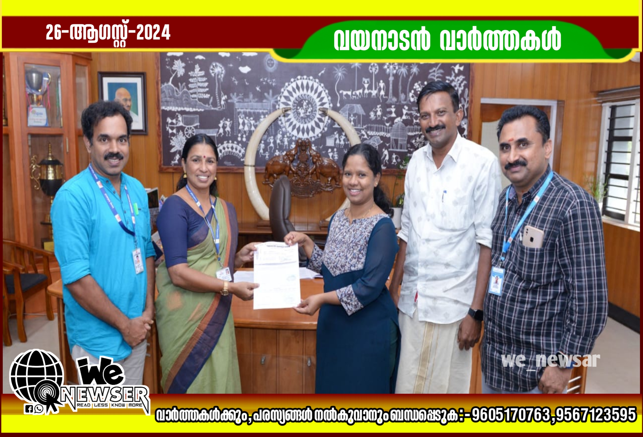 കലക്ടറുടെ ചേമ്പറിൽ നടന്ന ചടങ്ങിൽ വെങ്ങപ്പള്ളി ഗ്രാമ പഞ്ചായത്ത് പ്രസിഡന്റ് ശ്രീമതി ഇ കെ രേണുക ചെക്ക് കൈമാറി. ഗ്രാമ പഞ്ചായത്ത് അംഗം ജാസർ പാലക്കൽ, സെക്രട്ടറി ശ്രീജിത്ത് എ ആർ, അക്കൗണ്ടന്റ് ശിവദാസൻ കെ പി എന്നിവർ പങ്കെടുത്തു.