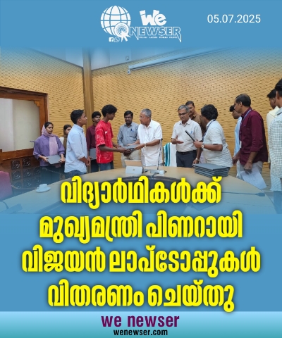 മുണ്ടക്കൈ-ചൂരല്‍മല ദുരിതബാധിത പ്രദേശത്തെ വിദ്യാര്‍ഥികള്‍ക്ക് പഠനാവശ്യത്തിനുള്ള ലാപ്‌ടോപ്പ് മുഖ്യമന്ത്രി പിണറായി വിജയന്‍ തൈക്കാട് ഗവ ഗസ്റ്റ് ഹൗസില്‍ വിതരണം ചെയ്തു. ആദ്യഘട്ടത്തില്‍