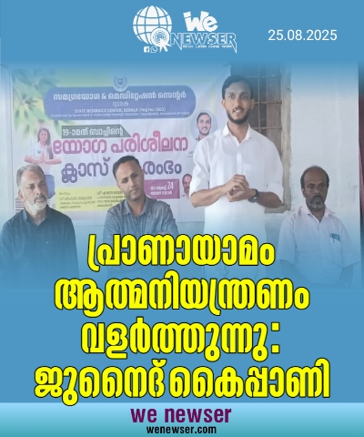 ദ്വാരക: ആത്മനിയന്ത്രണവും ആത്മവിശ്വാസവും വളർത്തുവാൻ പ്രാണായാമവും യോഗയും സഹായിക്കുമെന്ന് വയനാട് ജില്ലാ പഞ്ചായത്ത് ക്ഷേമകാര്യ സ്റ്റാൻഡിങ് കമ്മിറ്റി ചെയർപേഴ്സൺ ജുനൈദ് കൈപ്പാണി പറഞ്ഞു.ദ്വാരകയിൽ