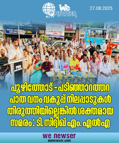 പടിഞ്ഞാറത്തറ: പൂഴിത്തോട് -പടിഞ്ഞാറത്തറ പാത വയനാടിന്റെ കണക്റ്റിവിറ്റിക്ക് ഏറെ പ്രാധാന്യമുള്ളതാണെന്നും,ആ പാതയോട് വനം വകുപ്പ് 1995-ൽ സ്വീകരിച്ച നിലപാട് ഇപ്പോൾ നടക്കുന്ന ഇൻവെസ്റ്റിഗേഷനിൽ ആവർത്തിച്ചാൽ ശക്തമായ പ്രക്ഷോഭത്തിന് വയനാട് വേദിയാകുമെന്നും താൻ അതിന്റെ മുൻ നിരയിലുണ്ടാവുമെന്നും ടി സിദ്ദിഖ് എം.എൽ എ പറഞ്ഞു. പൂഴിത്തോട് -പടിഞ്ഞാറത്തറ പാത 12 മീറ്റർ വീതിയിലാക്കുന്നതിന് ഭൂമി വീട്ടു നൽകിയ കുടുംബാംഗങ്ങളുടെ പ്രതിനിധികൾ പടിഞ്ഞാറത്തറ ടൗണിൽ ജനകീയ കർമ്മ സമിതിയുടെ സമരപന്തലിനരുകിലായി നടത്തിയ ഏകദിന സത്യാഗ്രഹത്തിന്റെ സമാപനം ഉദ്ഘാടനം ചെയ്തു സംസാരിക്കുകയായിരുന്നു അദ്ദേഹം. കക്ഷി രാഷ്ട്രീയത്തിനതീതമായി വികസനത്തിൽ എല്ലാവരും ഒറ്റക്കെട്ടായി നിൽക്കണം. താൻ MLA ആയ ശേഷം 28 തവണ ചുരത്തിലെ ഗതാഗതക്കുരുക്കിലമർന്നു. HIN1ബാധിച്ച എന്നേയും വഹിച്ച് കോഴിക്കോടേക്ക് പോയ ആംബുലൻസുപ്പോലും കുരുക്കിലമർന്നു. ഒരു ജനപ്രതിനിധിയായ തന്റെ അവസ്ഥ ഇതാണെങ്കിൽ ഇവിടുത്തെ സാധാരണക്കാരുടെ സ്ഥിതിയെന്താണ്. വയനാട്ടിലേക്ക് ഒരു ബദൽ പാത എന്നാൽ അത് തുരങ്ക പാത മാത്രമാണെന്ന നിലപാട് അംഗീകരിക്കില്ല. ഈ പാതയ്ക്കു വേണ്ടി ജനകീയ കർമ്മ സമിതി നാളുകളായി തുടർന്നു വരുന്ന പോരാട്ടം ശ്ലാഹനീയമാണ്. ജനകീയ കർമ്മ സമിതി പ്രസിഡണ്ട് ശകുന്തള ഷണ്മുഖൻ അധ്യക്ഷത വഹിച്ചു. രക്ഷാധികാരി ഫാ വിനോദ്പാക്കാനിക്കുഴിയിൽ,ജില്ലാ പഞ്ചായത്തംഗം എം മുഹമ്മദ് ബഷീർ ബ്ലോക്ക് പഞ്ചായത്തംഗങ്ങളായപി.കെ അബ്ദുൾറഹ്മാൻ , അസ്മ, സെയ്ത് മാനന്തവാടി (വെൽഫയർ പാർട്ടി ) ഗഫൂർ വെണ്ണിയോട് (പൊതുപ്രവർത്തകൻ) എം.പി സുകുമാരൻ ബി ജെ പി ജില്ലാ ജനറൽ സെക്രട്ടറി, മണി (ആദിവാസി കൂട്ടായ്മ ,)വാർഡംഗങ്ങൾ, വിവിധ രാഷ്ട്രിയ പാർട്ടി പ്രതിനിധികൾ, സംഘടനാ പ്രതിനിധികൾ സംസാരിച്ചു. കമൽ ജോസഫ് സ്വാഗതവും സി.കെ ആലിക്കുട്ടി നന്ദിയും പറഞ്ഞു.