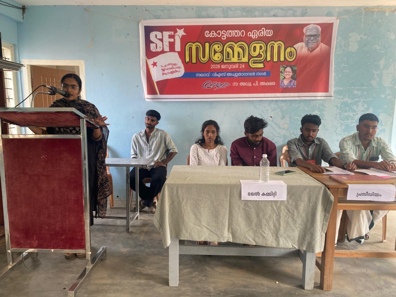 കണിയാമ്പറ്റ :എസ് എഫ് ഐ കോട്ടത്തറ ഏരിയ സമ്മേളനം കേന്ദ്രകമ്മിറ്റി അംഗം സ:പി അക്ഷര ഉത്ഘാടനം ചെയ്തു.ഏരിയ കമ്മിറ്റി പ്രസിഡന്റ് സ:കൃഷ്ണ ഭട്ടിന്റെ അധ്യക്ഷതയിൽ ചേർന്ന സമ്മേളനത്തിൽ ഏരിയ ജോ.സെക്രട്ടറി സ:അതുൽ ശങ്കർ രക്തസാക്ഷി പ്രമേയവും ഏരിയ സെക്രട്ടറി സ:നീരജ് കെ ഇന്ദ്രൻ പ്രവർത്തനറിപ്പോർട്ടും സ:അഭിൻ ബാബു സംഘടന റിപ്പോർട്ടും അവതരിപ്പിച്ചു.സ്വാഗതസംഘം ചെയർമാൻ സ:ടി എസ് സുരേഷ് സ്വാഗതവും വൈസ് ചെയർമാൻ സ:ലത്തീഫ് മേമാടൻ നന്ദിയും പറഞ്ഞു.