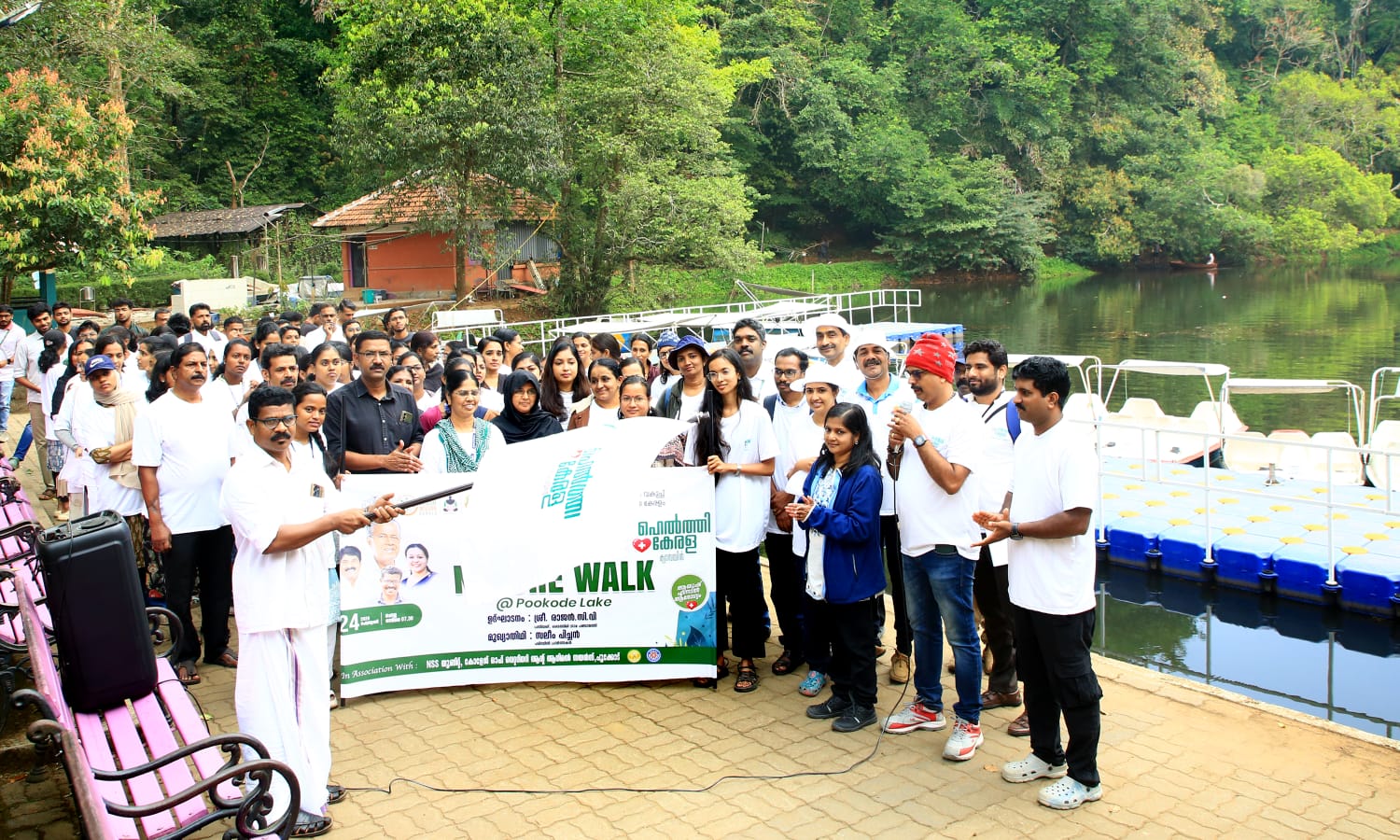 പൂക്കോട് :കേരള സർക്കാർ ഭാരതീയ ചികിത്സാ വകുപ്പിന്റെയും, നാഷണൽ ആയുഷ് മിഷന്റെയും ആഭിമുഖ്യത്തിൽ ഹെൽത്തി കേരള ക്യാമ്പയിന്റെ ഭാഗമായി പൂക്കോട് തടാകത്തിലേയ്ക്ക് പ്രകൃതി നടത്തം സംഘടിപ്പിച്ചു.വൈബ് ഫോർ വെൽനെസ്സ് പദ്ധതിയുടെ ലക്ഷ്യമായുള്ള ഈറ്റ് വെൽ, കെയർ വെൽ, ആക്ട് വെൽ എന്നിവയെ വിദ്യാർത്ഥികളിലേക്കും,ജീവനക്കാരിലേക്കും എത്തിയ്ക്കുന്നതിന്റെ ഭാഗമായുള്ള പ്രകൃതി നടത്തത്തിൽ പൂക്കോട് വെറ്റിനറി കോളേജിലെ എൻ.എസ്.എസ് വിദ്യാർഥികളും, ഭാരതീയ ചികിത്സാ വകുപ്പിലെയും, നാഷണൽ ആയുഷ് മിഷനിലെയും ജീവനക്കാരും പങ്കെടുത്തു.പരിപാടി വൈത്തിരി ഗ്രാമ പഞ്ചായത്ത് പ്രസിഡന്റ് ശ്രീ രാജൻ സി.വി ഫ്ലാഗ് ഓഫ് ചെയ്തു.പൂക്കോട് തടാക പരിസരത്ത് അധികം ആരും അറിയപ്പെടാതെ കിടക്കുന്ന ഭക്ഷ്യ യോഗ്യമായ സസ്യങ്ങളെ കുറിച്ചും, ഔഷധ സസ്യങ്ങളെ കുറിച്ചും എം.എസ് സ്വാമി നാഥൻ ഫൌണ്ടേഷനിലെ പരിസ്ഥിതി പ്രവർത്തകൻ ശ്രീ സലീം പിച്ചൻ പരിചയപ്പെടുത്തി.