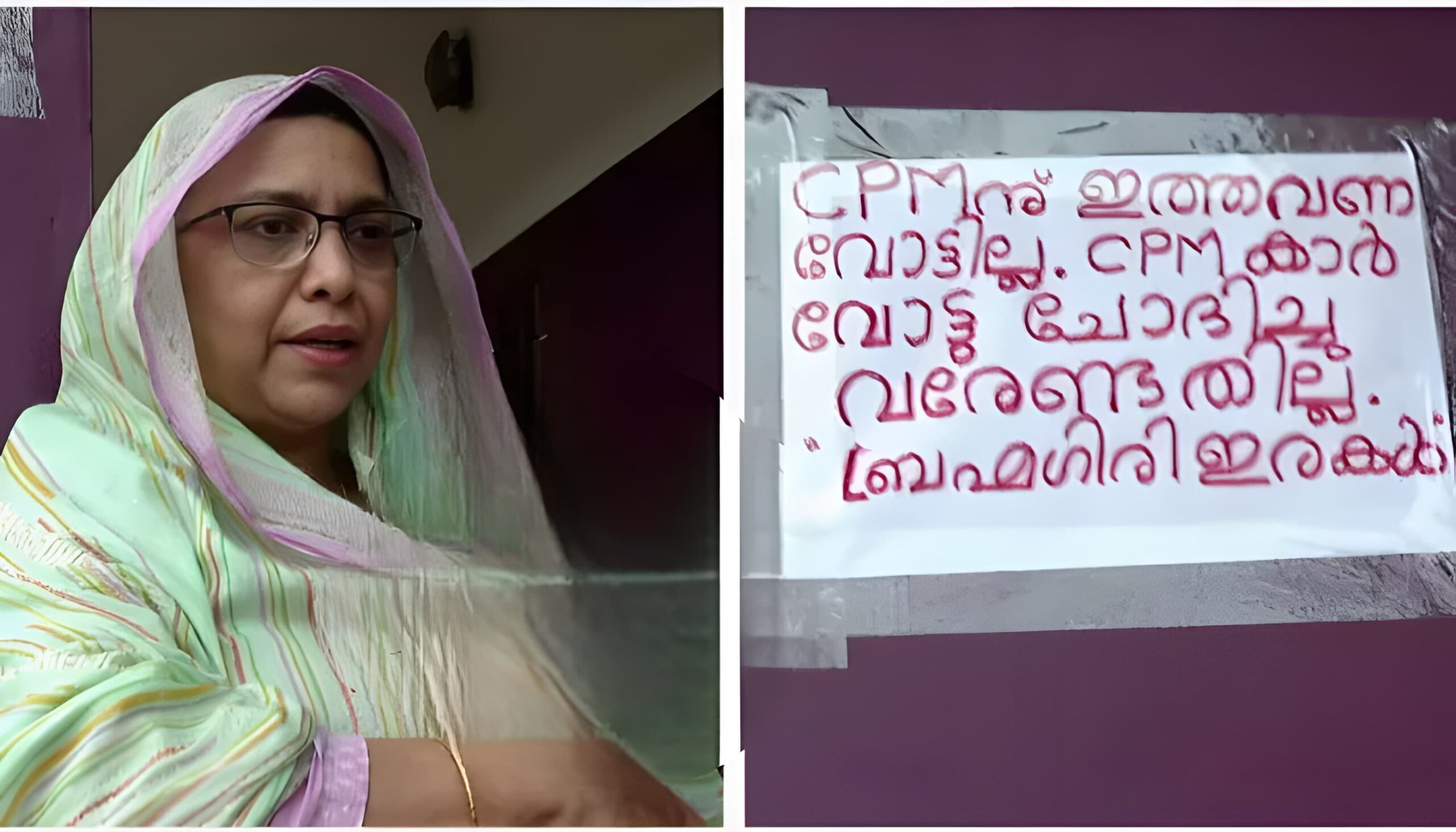 ‘സിപിഎമ്മിന് ഇത്തവണ വോട്ടില്ല; സിപിഎമ്മുകാര്‍ വോട്ടു ചോദിച്ച് വരേണ്ടതില്ല; ബ്രഹ്‌മഗിരി ഇരകള്‍’; വീടിന് മുന്നില്‍ പോസ്റ്റര്‍ പതിച്ച് ബ്രഹ്‌മഗിരിയില്‍ നിക്ഷേപം നടത്തി പണം നഷ്ടമായ കുടുംബം