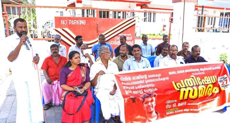 കല്പറ്റ: അഞ്ചരക്കണ്ടി ദന്തൽ കോളേജ് വിദ്യാർഥി നിതിൻ രാജിന്റെ മരണത്തിൽ കുറ്റക്കാരെ ഉടന് അറസ്റ്റ് ചെയ്യുക, സംഭവത്തില് സമഗ്ര അന്വേഷണം നടത്തുക, കുടുംബത്തിന് ധനസഹായം പ്രഖ്യാപിക്കുക തുടങ്ങിയ ആവശ്യങ്ങൾ ഉന്നയിച്ച് എഐഡിആർഎം, ബികെഎംയു, ആദിവാസി മഹാസഭ എന്നിവയുടെ സംയുക്താഭിമുഖ്യത്തിൽ കൽപറ്റ ഹെഡ് പോസ്റ്റോഫീസിന് മുന്നില് ധര്ണ സംഘടിപ്പിച്ചു.