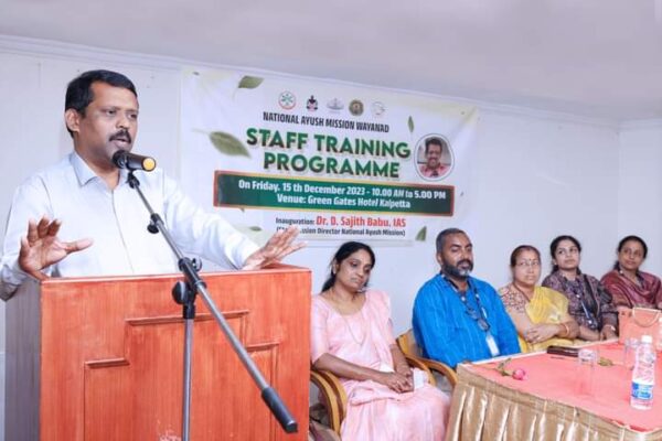 കൽപ്പറ്റ : നാഷണല് ആയുഷ് മിഷന് ജീവനക്കാര്ക്കായി പരിശീലനം നല്കി. കല്പ്പറ്റ ഗ്രീന് ഗേറ്റസ് ഹോട്ടലില് നടന്ന പരിശീലന പരിപാടി നാഷ്ണല് ആയുഷ് മിഷന് സ്റ്റേറ്റ് ഡയറക്ടര് ഡോ.ഡി സജിത് ബാബു ഉദ്ഘാടനം ചെയ്തു. ആയുഷ് മിഷന് ജില്ലയില് നടപ്പിലാക്കാന് പോകുന്ന പ്രവര്ത്തനങ്ങളെകുറിച്ച് സ്റ്റേറ്റ് പ്രോഗ്രാം മാനേജര് ഡോ പി.ആര് സജിര് വിശദീകരിച്ചു. ജില്ലാ പ്രോഗ്രാം മാനേജര് ഡോ. ഹരിത ജയരാജ് പ്രവര്ത്തന റിപ്പോര്ട്ട് അവതരിപ്പിച്ചു. ഭാരതീയ ചികിത്സ വകുപ്പ് ജില്ലാ മെഡിക്കല് ഓഫീസര് ഡോ എ….